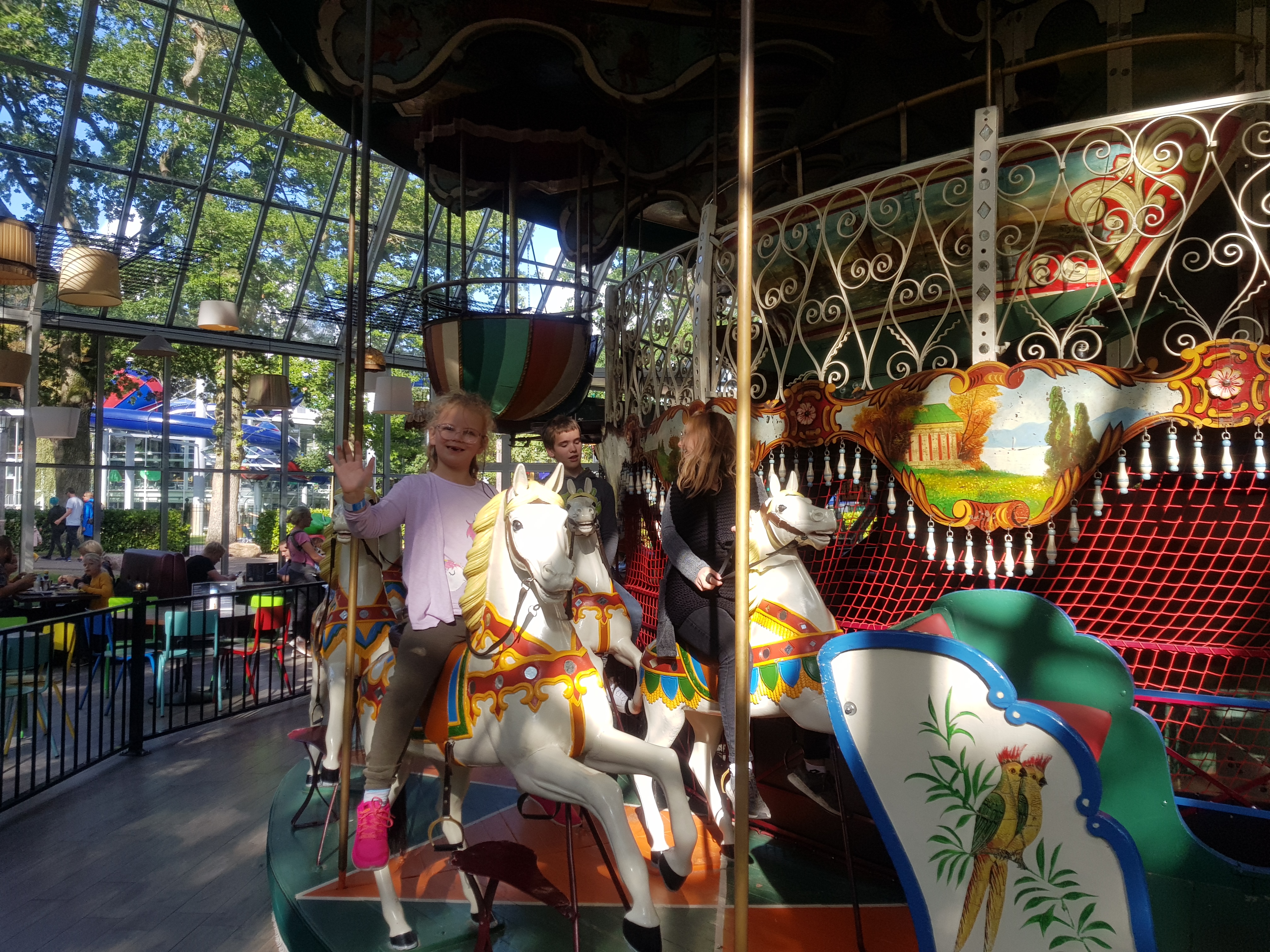 Het pannenkoekenrestaurant, in het glazen gebouw met in het midden een prachtige carrousel van twee verdiepingen was onze lievelingsplek.